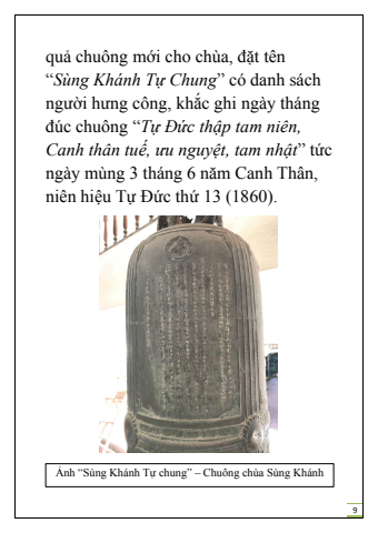 9qu%u1ea3 chu%u00f4ng m%u1edbi cho ch%u00f9a, %u0111%u1eb7t t%u00ean %u201cS%u00f9ng Kh%u00e1nh T%u1ef1 Chung%u201d c%u00f3 danh s%u00e1ch ng%u01b0%u1eddi h%u01b0ng c%u00f4ng, kh%u1eafc ghi ng%u00e0y th%u00e1ng %u0111%u00fac chu%u00f4ng %u201cT%u1ef1 %u0110%u1ee9c th%u1eadp tam ni%u00ean, Canh th%u00e2n tu%u1ebf, %u01b0u nguy%u1ec7t, tam nh%u1eadt%u201d t%u1ee9c ng%u00e0y m%u00f9ng 3 th%u00e1ng 6 n%u0103m Canh Th%u00e2n, ni%u00ean hi%u1ec7u T%u1ef1 %u0110%u1ee9c th%u1ee9 13 (1860).%u1ea2nh %u201cS%u00f9ng Kh%u00e1nh T%u1ef1 chung%u201d %u2013 Chu%u00f4ng ch%u00f9a S%u00f9ng Kh%u00e1nh