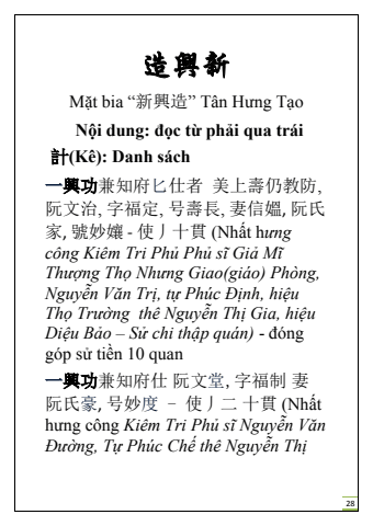 28%u9020%u8208%u65b0 M%u1eb7t bia %u201c%u65b0%u8208%u9020%u201d T%u00e2n H%u01b0ng T%u1ea1oN%u1ed9i dung: %u0111%u1ecdc t%u1eeb ph%u1ea3i qua tr%u00e1i%u8a08(K%u00ea): Danh s%u00e1ch %u4e00%u8208%u529f%u517c%u77e5%u5e9c%u5315%u4ed5%u8005 %u7f8e%u4e0a%u58fd%u4ecd%u6559%u9632, %u962e%u6587%u6cbb, %u5b57%u798f%u5b9a, %u53f7%u58fd%u9577, %u59bb%u4fe1%u5abc, %u962e%u6c0f%u5bb6, %u865f%u5999%u5b43 - %u4f7f%u4e3f%u5341%u8cab (Nh%u1ea5t h%u01b0ng c%u00f4ng Ki%u00eam Tri Ph%u1ee7 Ph%u1ee7 s%u0129 Gi%u1ea3 M%u0129 Th%u01b0%u1ee3ng Th%u1ecd Nh%u01b0ng Giao(gi%u00e1o) Ph%u00f2ng, Nguy%u1ec5n V%u0103n Tr%u1ecb, t%u1ef1 Ph%u00fac %u0110%u1ecbnh, hi%u1ec7u Th%u1ecd Tr%u01b0%u1eddng th%u00ea Nguy%u1ec5n Th%u1ecb Gia, hi%u1ec7u Di%u1ec7u B%u1ea3o %u2013 S%u1eed chi th%u1eadp qu%u00e1n) - %u0111%u00f3ng g%u00f3p s%u1eed ti%u1ec1n 10 quan%u4e00%u8208%u529f%u517c%u77e5%u5e9c%u4ed5 %u962e%u6587%u5802,%u5b57%u798f%u5236 %u59bb%u962e%u6c0f%u8c6a, %u53f7%u5999%u5ea6 - %u4f7f%u4e3f%u4e8c %u5341%u8cab (Nh%u1ea5t h%u01b0ng c%u00f4ng Ki%u00eam Tri Ph%u1ee7 s%u0129 Nguy%u1ec5n V%u0103n %u0110%u01b0%u1eddng, T%u1ef1 Ph%u00fac Ch%u1ebf th%u00ea Nguy%u1ec5n Th%u1ecb