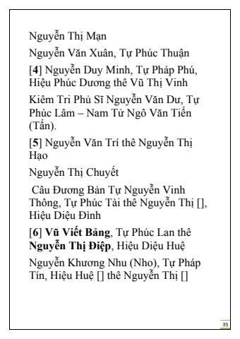 35Nguy%u1ec5n Th%u1ecb M%u1ea1nNguy%u1ec5n V%u0103n Xu%u00e2n, T%u1ef1 Ph%u00fac Thu%u1eadn[4] Nguy%u1ec5n Duy Minh, T%u1ef1 Ph%u00e1p Ph%u00fa, Hi%u1ec7u Ph%u00fac D%u01b0%u01a1ng th%u00ea V%u0169 Th%u1ecb VinhKi%u00eam Tri Ph%u1ee7 S%u0129 Nguy%u1ec5n V%u0103n D%u01b0, T%u1ef1Ph%u00fac L%u00e2m %u2013 Nam T%u1eed Ng%u00f4 V%u0103n Ti%u1ebfn (T%u1ea5n).[5] Nguy%u1ec5n V%u0103n Tr%u00ed th%u00ea Nguy%u1ec5n Th%u1ecbH%u1ea1o Nguy%u1ec5n Th%u1ecb Chuy%u1ebftC%u00e2u %u0110%u01b0%u01a1ng B%u1ea3n T%u1ef1 Nguy%u1ec5n VinhTh%u00f4ng, T%u1ef1 Ph%u00fac T%u00e0i th%u00ea Nguy%u1ec5n Th%u1ecb [], Hi%u1ec7u Di%u1ec7u %u0110%u00ecnh[6] V%u0169 Vi%u1ebft B%u1ea3ng, T%u1ef1 Ph%u00fac Lan th%u00ea Nguy%u1ec5n Th%u1ecb %u0110i%u1ec7p, Hi%u1ec7u Di%u1ec7u Hu%u1ec7Nguy%u1ec5n Kh%u01b0%u01a1ng Nhu (Nho), T%u1ef1 Ph%u00e1p T%u00edn, Hi%u1ec7u Hu%u1ec7 [] th%u00ea Nguy%u1ec5n Th%u1ecb []
