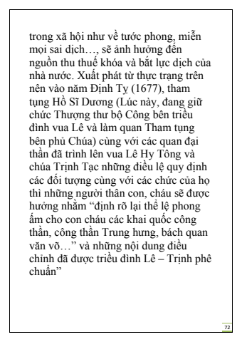 72trong x%u00e3 h%u1ed9i nh%u01b0 v%u1ec1 t%u01b0%u1edbc phong, mi%u1ec5n m%u1ecdi sai d%u1ecbch%u2026, s%u1ebd %u1ea3nh h%u01b0%u1edfng %u0111%u1ebfn ngu%u1ed3n thu thu%u1ebf kh%u00f3a v%u00e0 b%u1eaft l%u1ef1c d%u1ecbch c%u1ee7a nh%u00e0 n%u01b0%u1edbc. Xu%u1ea5t ph%u00e1t t%u1eeb th%u1ef1c tr%u1ea1ng tr%u00ean n%u00ean v%u00e0o n%u0103m %u0110%u1ecbnh T%u1ef5 (1677), tham t%u1ee5ng H%u1ed3 S%u0129 D%u01b0%u01a1ng (L%u00fac n%u00e0y, %u0111ang gi%u1eefch%u1ee9c Th%u01b0%u1ee3ng th%u01b0 b%u1ed9 C%u00f4ng b%u00ean tri%u1ec1u %u0111%u00ecnh vua L%u00ea v%u00e0 l%u00e0m quan Tham t%u1ee5ng b%u00ean ph%u1ee7 Ch%u00faa) c%u00f9ng v%u1edbi c%u00e1c quan %u0111%u1ea1i th%u1ea7n %u0111%u00e3 tr%u00ecnh l%u00ean vua L%u00ea Hy T%u00f4ng v%u00e0 ch%u00faa Tr%u1ecbnh T%u1ea1c nh%u1eefng %u0111i%u1ec1u l%u1ec7 quy %u0111%u1ecbnh c%u00e1c %u0111%u1ed1i t%u01b0%u1ee3ng c%u00f9ng v%u1edbi c%u00e1c ch%u1ee9c c%u1ee7a h%u1ecdth%u00ec nh%u1eefng ng%u01b0%u1eddi th%u00e2n con, ch%u00e1u s%u1ebd %u0111%u01b0%u1ee3c h%u01b0%u1edfng nh%u1eb1m %u201c%u0111%u1ecbnh r%u00f5 l%u1ea1i th%u1ec3 l%u1ec7 phong %u1ea5m cho con ch%u00e1u c%u00e1c khai qu%u1ed1c c%u00f4ng th%u1ea7n, c%u00f4ng th%u1ea7n Trung h%u01b0ng, b%u00e1ch quan v%u0103n v%u00f5%u2026%u201d v%u00e0 nh%u1eefng n%u1ed9i dung %u0111i%u1ec1u ch%u1ec9nh %u0111%u00e3 %u0111%u01b0%u1ee3c tri%u1ec1u %u0111%u00ecnh L%u00ea %u2013 Tr%u1ecbnh ph%u00ea chu%u1ea9n%u201d